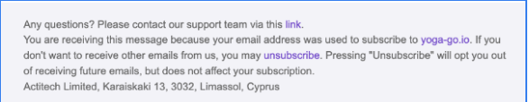 If you no longer want to receive any emails from us, you can unsubscribe from them at the bottom of the email using the ‘unsubscribe’ hyperlink, as shown below: